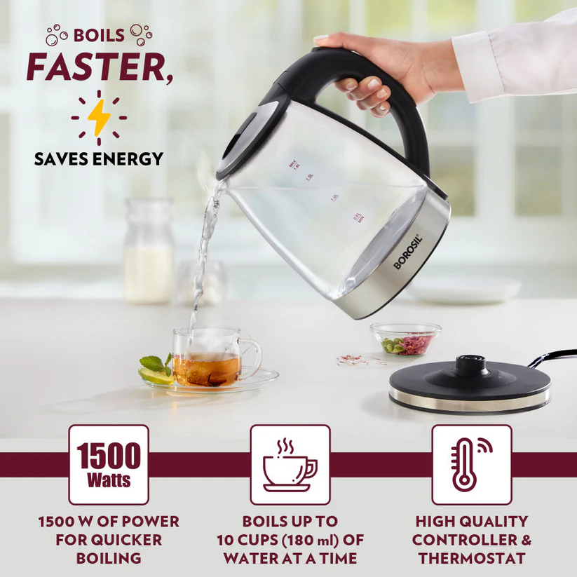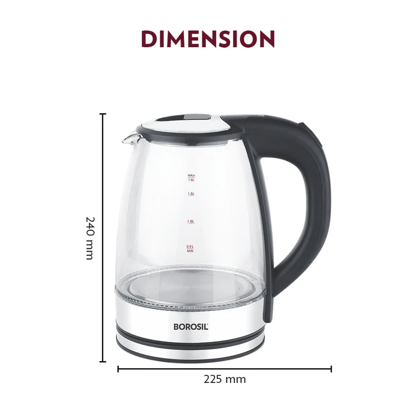 • See through borosilicate glass kettle