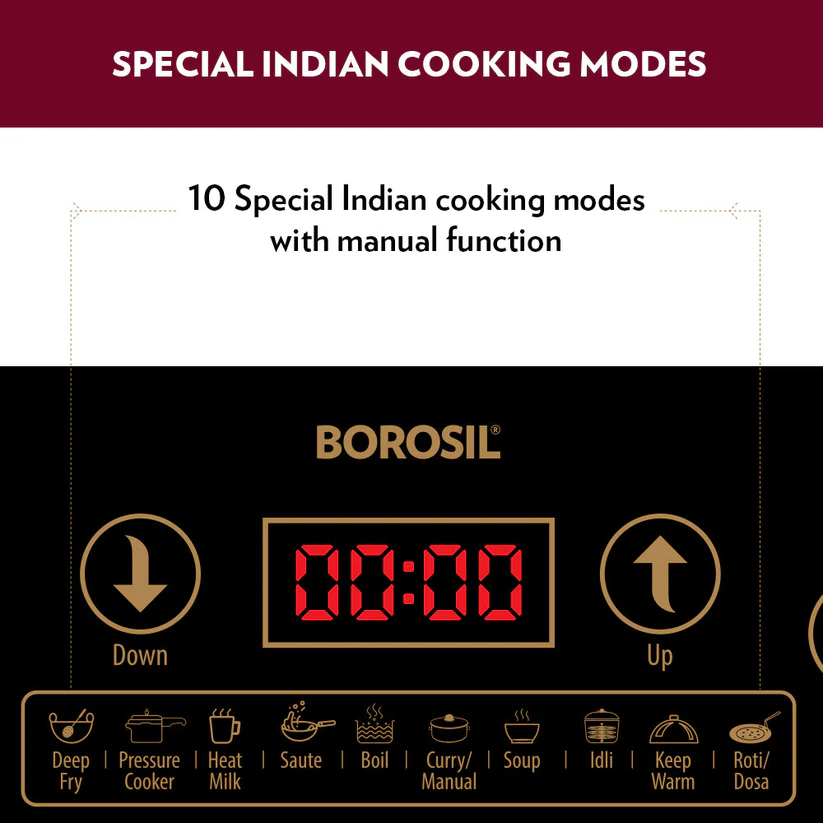 - 2000 W power for faster cooking